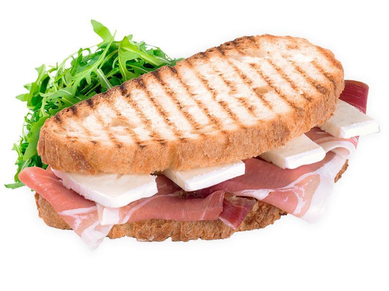 Soffice baguette farcita con formaggio e prosciutto cotto.